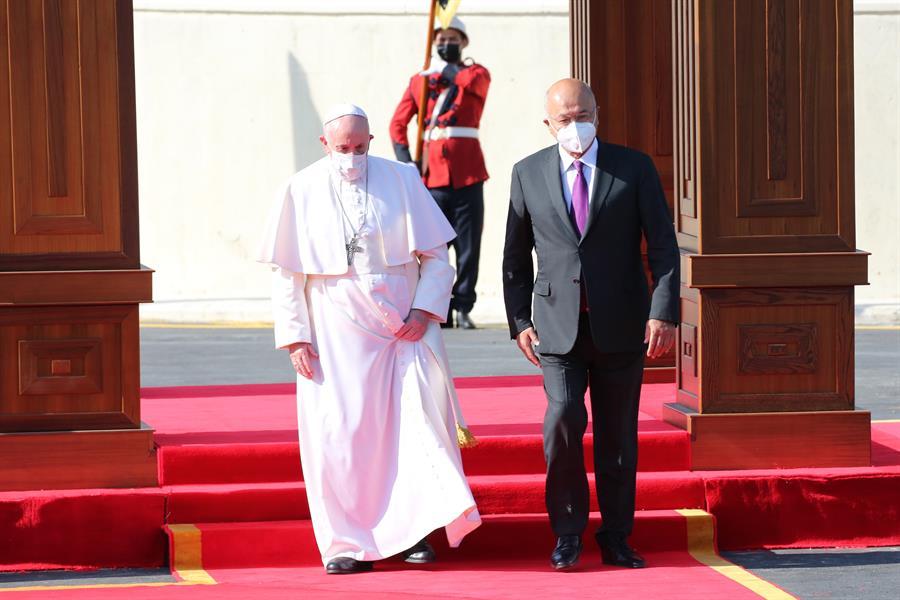 También tuvo palabras sobre la pandemia y agregó que, aunque todos están colaborando, esta crisis requiere esfuerzos comunes "para dar los pasos necesarios" y "entre ellos una distribución equitativa de las vacunas para todos". Las primeras vacunas llegaron a Irak sólo hace unos días.