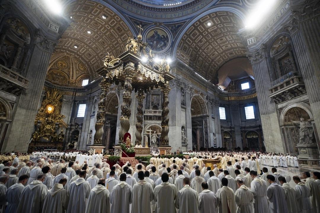 En la misa de este Jueves Santo que se celebra en todas las catedrales del mundo, se conmemora la institución del sacramento del orden sacerdotal por Jesucristo durante la Última Cena y está dedicada a la renovación por parte de los sacerdotes de los votos de pobreza, castidad y obediencia, por lo que a la ceremonia participaron sobre todo los curas de la diócesis de Roma.