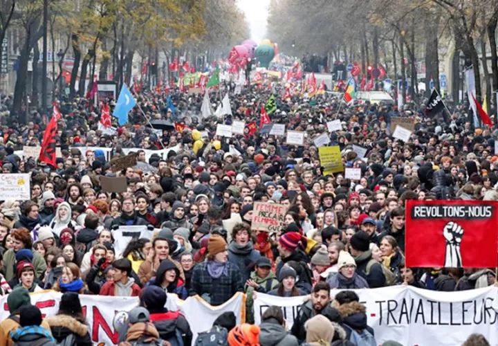Miles de personas salieron este sábado a manifestarse en diferentes ciudades de Francia en acciones contra el proyecto de reforma de las pensiones, que es objeto de una huelga en el transporte desde el jueves, y más en general contra la política del Gobierno de Emmanuel Macron.
