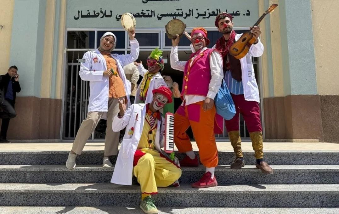 En el hospital infantil de Al-Rantisi, en el corazón de la ciudad de Gaza, el ruido de las máquinas médicas y el sonido aterrador de la guerra han sido opacados por las risas y la música de un grupo de payasos que busca entretener a los más pequeños con canciones, marionetas y pompas de jabón.