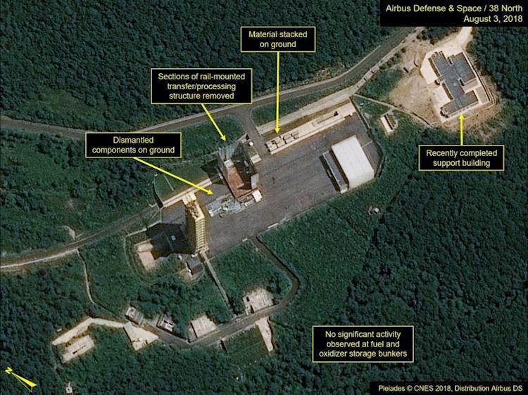 Corea del Norte empezó a desmantelar la plataforma de lanzamiento y el banco para motores de Sohae, dos de sus instalaciones clave, en julio de 2018, tras la primera cumbre entre el presidente de EE.UU., Donald Trump y su líder, Kim Jong-un, lo que se interpretó como un gesto de su predisposición para avanzar hacia la desnuclearización.