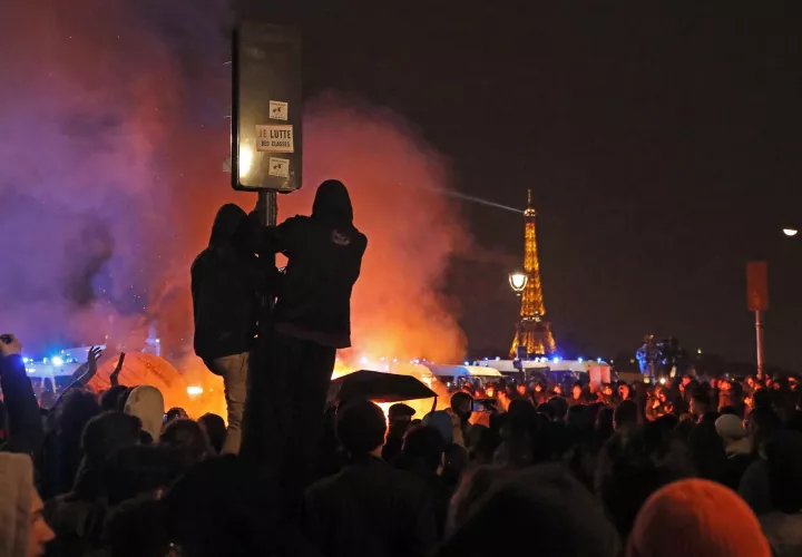 Las protestas en la emblemática plaza se comenzaron a organizar de manera espontánea y al margen de sindicatos o partidos desde el jueves, cuando el Gobierno de Emmanuel Macron aprobó por decreto y sin voto la impopular reforma de las pensiones que eleva la edad mínima de jubilación de los 62 a los 64 años.