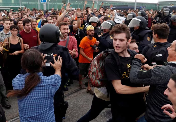 Policía reprime a independentistas catalanes en el aeropuerto de Barcelona