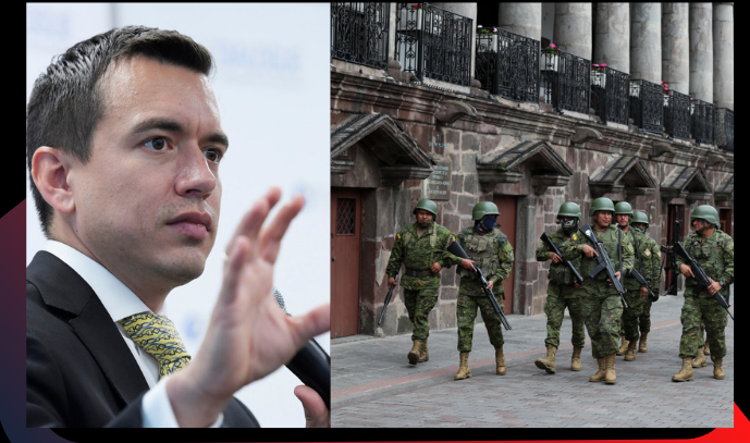 Noboa firmó el decreto en momentos de gran tensión en el país por estallidos de automóviles en distintas ciudades, ataques con explosivos, secuestro de policías y retención de agentes de las penitenciarías en las propias cárceles.