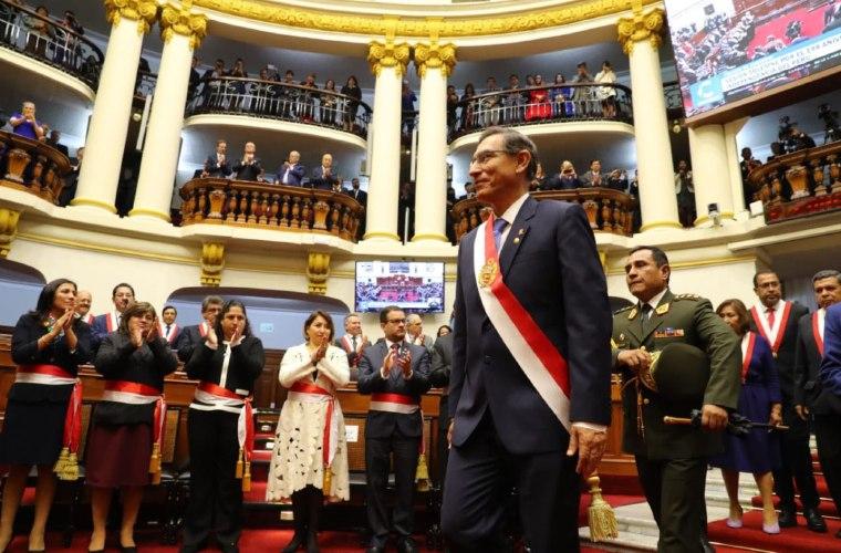 Vizcarra hizo su anuncio en la parte final del mensaje anual ante el Congreso por el aniversario de la Independencia de Perú, con lo que motivó interrupciones de la bancada de Fuerza Popular, algunos de cuyos miembros incluso lo llamaron "dictador".