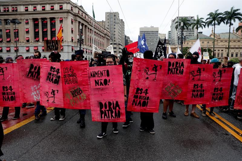 La protesta fue convocada por el Movimiento Passe Livre para denunciar el aumento de 5,26 % en la tarifa del billete de la red de transporte público (autobús, metro y tren), que subió el pasado domingo de 3,80 reales (1,18 dólares) a 4,00 reales (1,24 dólares).