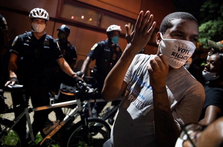 Los manifestantes, que en la noche del miércoles se concentraron ante las estaciones de policía de la ciudad, entonaron cánticos como "sin justicia, no habrá paz" y gritaron el nombre de Deon Kay, el joven afroamericano de 18 años al que un agente disparó mortalmente, de acuerdo al diario local Washingtonian.