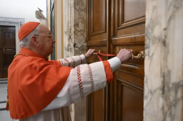 Además, cuando comienza el cónclave para elegir al nuevo papa, debe supervisar los procedimientos y garantizar que todo lo que sucede en la Capilla Sixtina permanezca en secreto. En la práctica, debe garantizar que los locales donde se desarrolla la votación permanezcan cerrados y que nadie entre en ellos sin autorización.