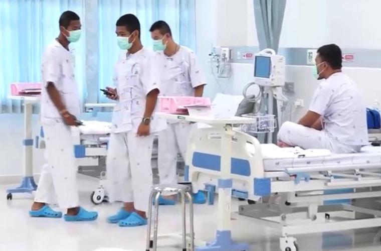 La televisión emitió en Tailandia las primeras imágenes en el hospital de los rescatados del interior de una cueva del norte del país, en la que se pasaron más de dos semanas atrapados.
