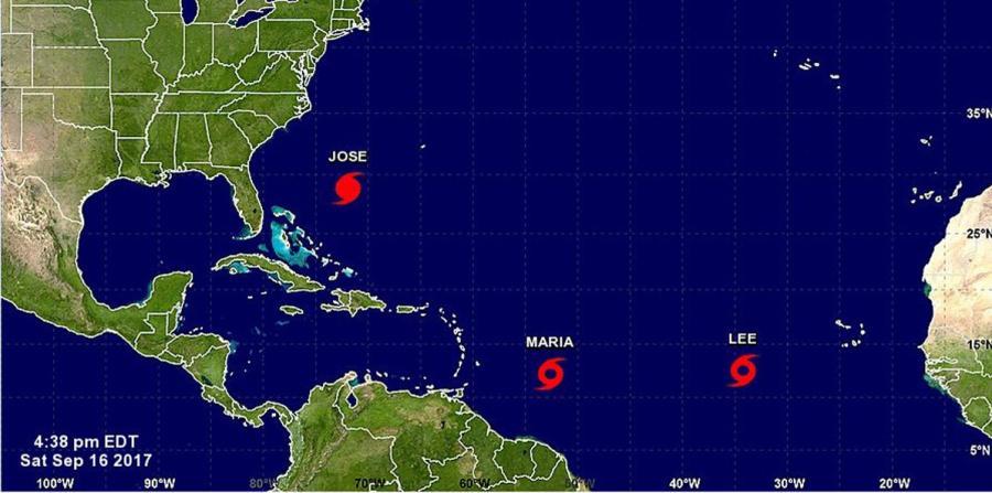 Asimismo, el huracán de categoría 1 José se mantiene entre las Bahamas y las Bermudas, moviéndose con rumbo norte a 6 millas por hora (9 km/h), según el CNH, en el que pronosticó que bajo ese patrón de trayectoria "el centro de José se desplazará sobre el oeste del Océano Atlántico, entre la costa este de Estados Unidos y Bermudas, durante el lunes"