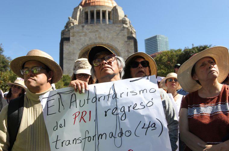 Los manifestantes se mostraron en contra de algunas de sus decisiones de Gobierno como la militarización de la seguridad pública, las consultas ciudadanas, la cancelación del Nuevo Aeropuerto Internacional de México (NAIM) y hasta de la invitación al presidente de Venezuela, Nicolás Maduro, a su toma de posesión.
