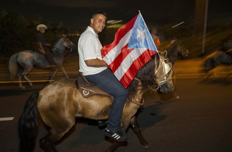 La protesta contra el gobernador de Puerto Rico, Ricardo Rosselló, para que renuncie al cargo por insultar a figuras públicas, llegó ayer hasta el Viejo San Juan,con motos acuáticas, camiones y hasta a caballo. EFE.