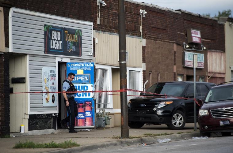 Las autoridades buscan a los dos agresores, dijo el oficial Thomas Tomasic, portavoz de la policía. Añadió que los dos hombres aparentemente tuvieron algún tipo de desacuerdo con las personas dentro del Tequila KC Bar, se fueron y luego regresaron armados.