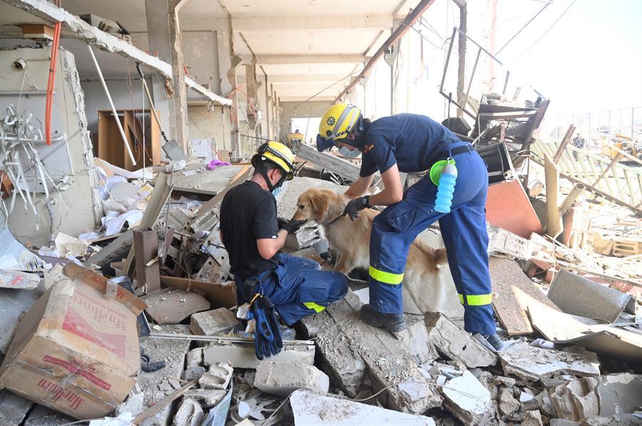 Los trabajos de rescate continúan este viernes en el puerto de Beirut, donde equipos internacionales tratan de recuperar cadáveres bajo los escombros dejados por una explosión que hasta el momento ha causado 154 muertos y miles de heridos.