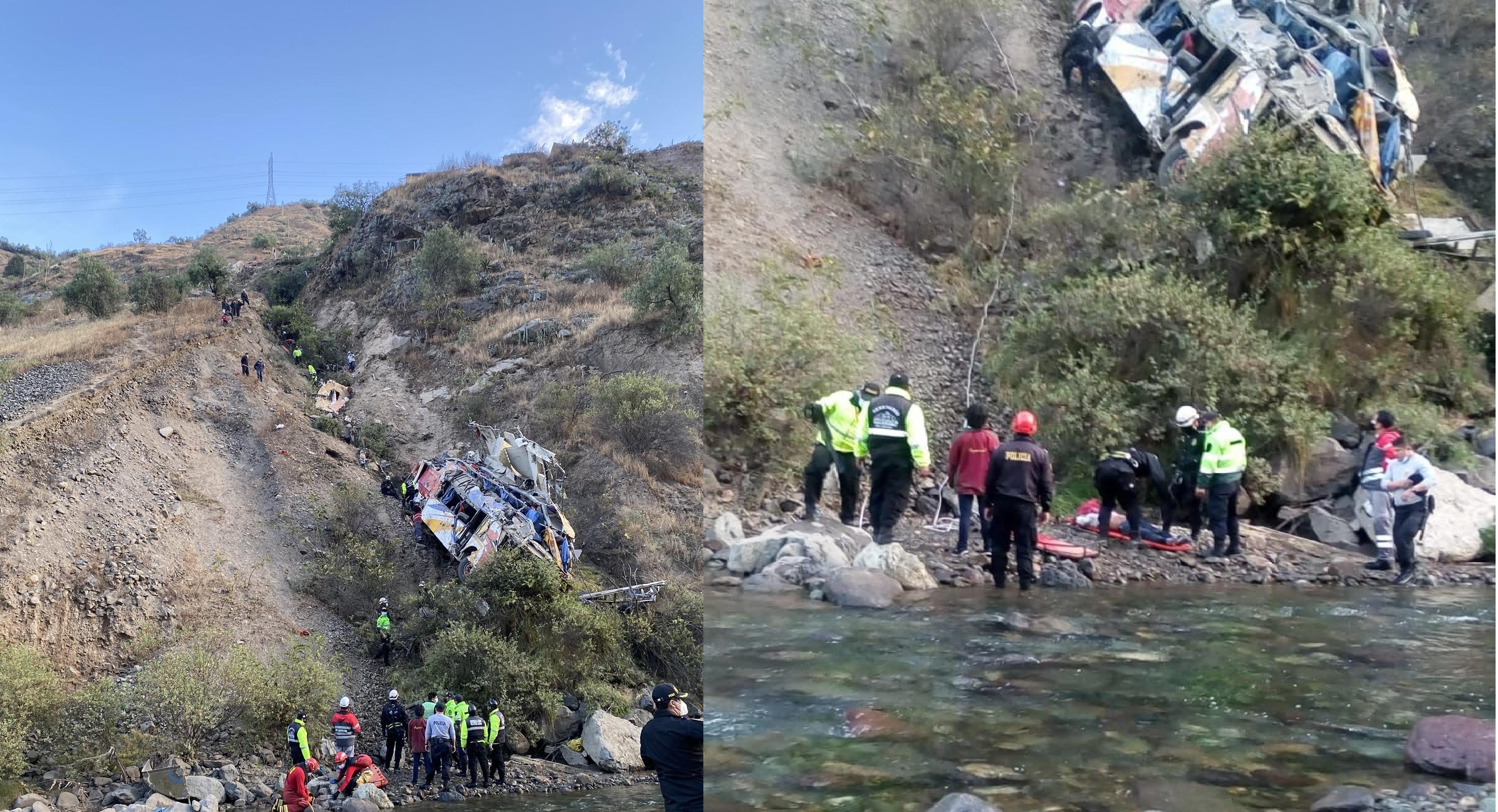 El vehículo se estrelló contra un cerro y cayó por un barranco de unos 100 metros de profundidad, quedando a escasos metros del río Rímac, el principal afluente que cruza la ciudad de Lima.