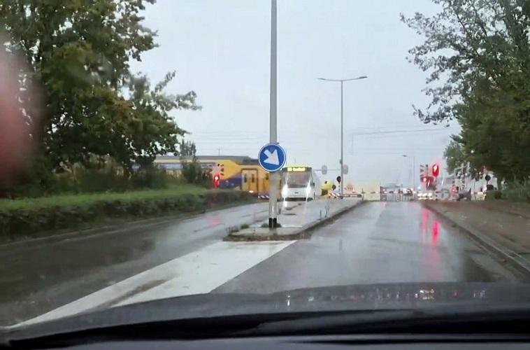 Tren parte a la mitad a un bus varado en las vías en Holanda