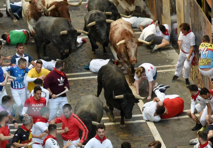 Con tres toros por delante de nuevo la famosa y larga calle Estafeta, exigente para los corredores por su ligera cuesta arriba, ha ofrecido las mejores experiencias para los mozos, ya que el ritmo constante de la estirada manada ha invitado a los participantes a acercarse a las astas.