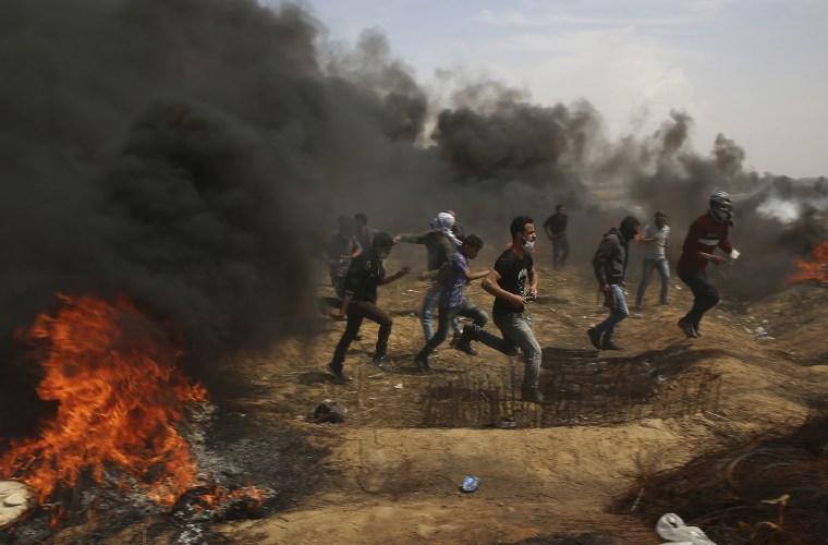 Los disturbios en la frontera comenzaron tras el rezo del mediodía, cuando aumenta el número de palestinos que acuden a los cinco puntos de protesta repartidos a lo largo de la valla divisoria con Israel.