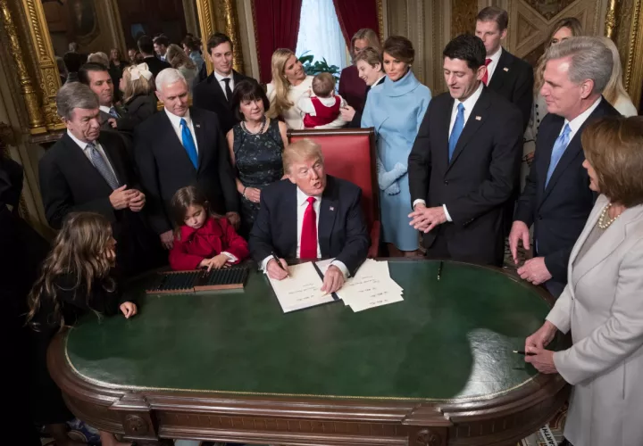 La ceremonia de firma capturó los primeros actos de Trump como presidente. No quedó claro por el momento si habría otros el viernes más tarde.