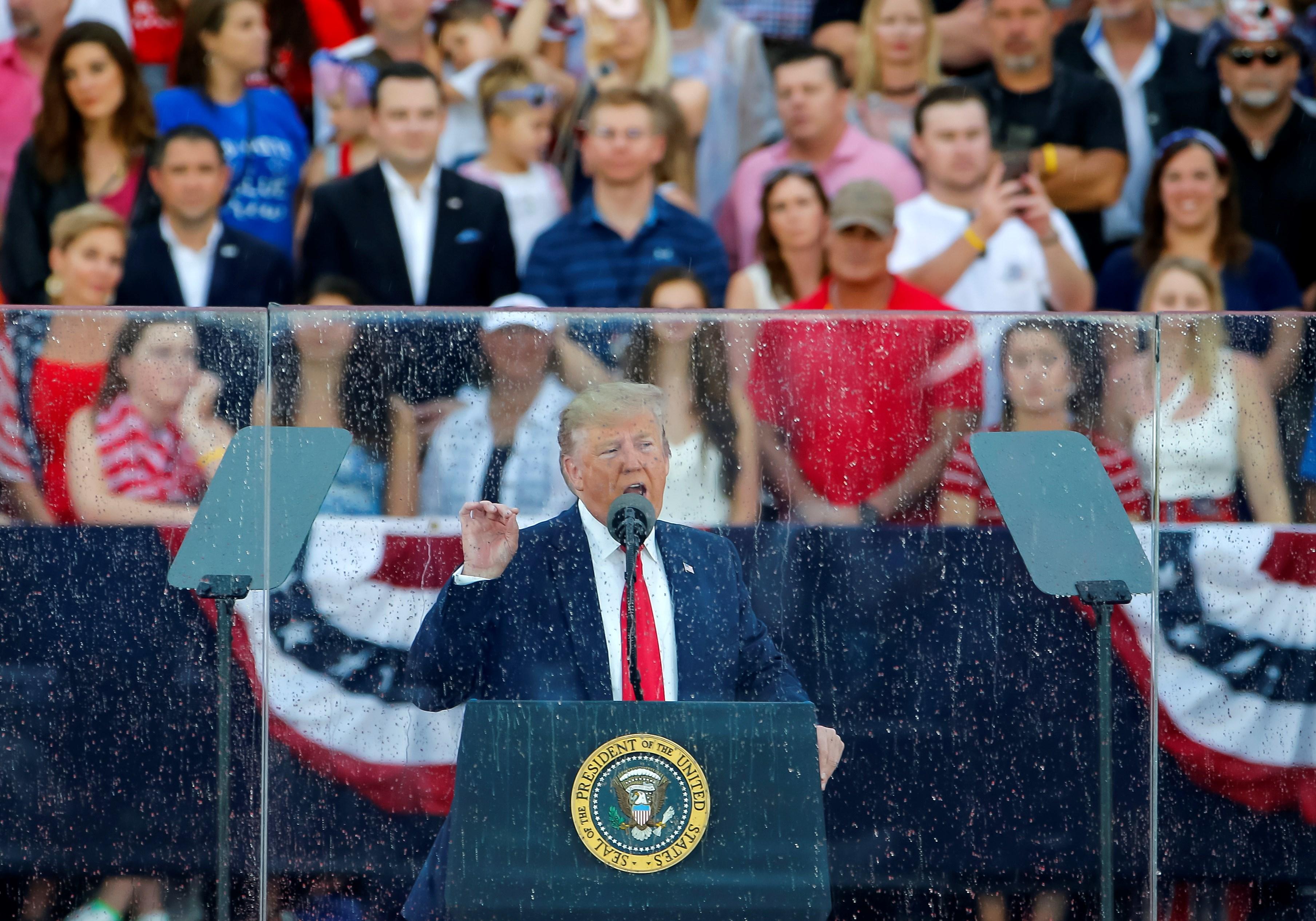 El mandatario pronunció estas palabras frente a un grupo de invitados vip por la Casa Blanca, que repartió entradas de las primeras filas de las gradas temporales delante del Monumento a Lincoln a grandes donantes republicanos y familiares de militares y veteranos de las Fuerzas Armadas.