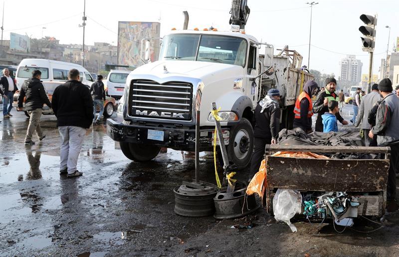El atentado, el más sangriento en la capital iraquí desde febrero de 2017, tuvo como blanco un grupo de desempleados que se concentraba a primera hora de la mañana en la céntrica plaza Al Tayarán (La Aviación) para buscar trabajo temporal.
