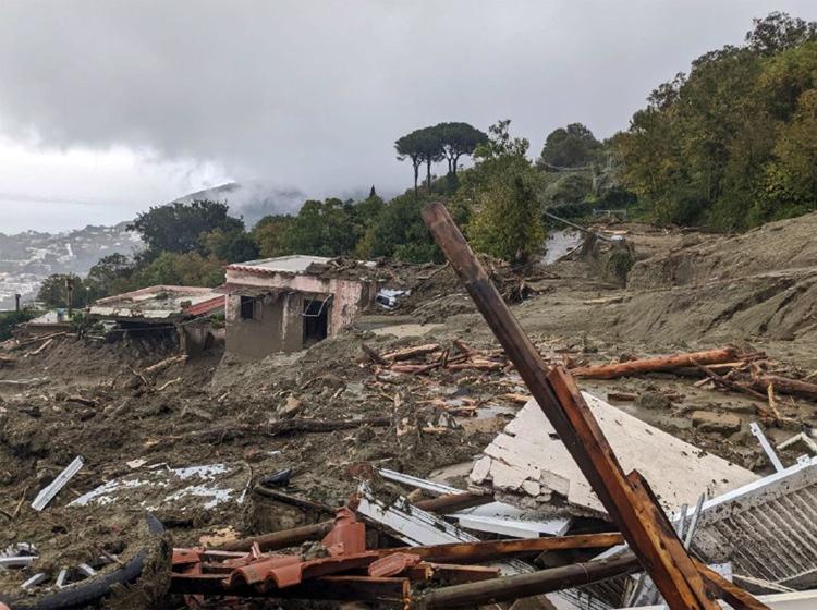Las imágenes que llegan de Ischia, una isla volcánica famosa por sus aguas termales, son de devastación y caos, con casas derrumbadas, calles repletas de rocas y árboles arrancados de raíz y coches y autobuses arrastrados hasta la propia costa.
