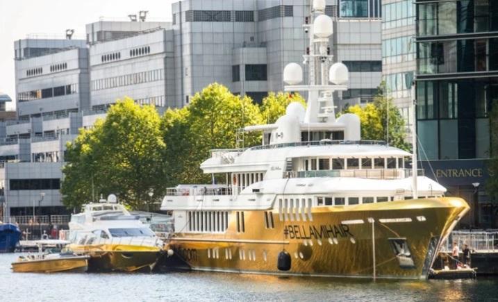 A pesar de toda la sensación que creó, lo cierto es que este yate de 54 metros estaba cubierto con simples láminas de vinilo dorado y la idea de su aspecto formaba parte de una estrategia publicitaria de la firma Bellami Hair. Esta es una de las marcas de extensiones de pelo más reconocidas en el mundo.
