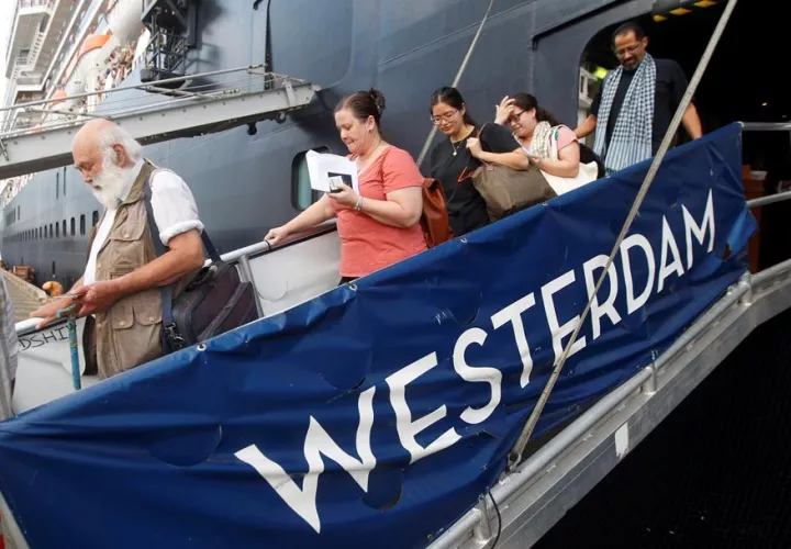 Holland America indicó que obtuvo el permiso para desembarcar a los 1.455 pasajeros y 802 tripulantes después de que veinte muestras de sangre dieran negativo tras ser examinadas en el laboratorio del Instituto Pasteur de Phnom Penh.
