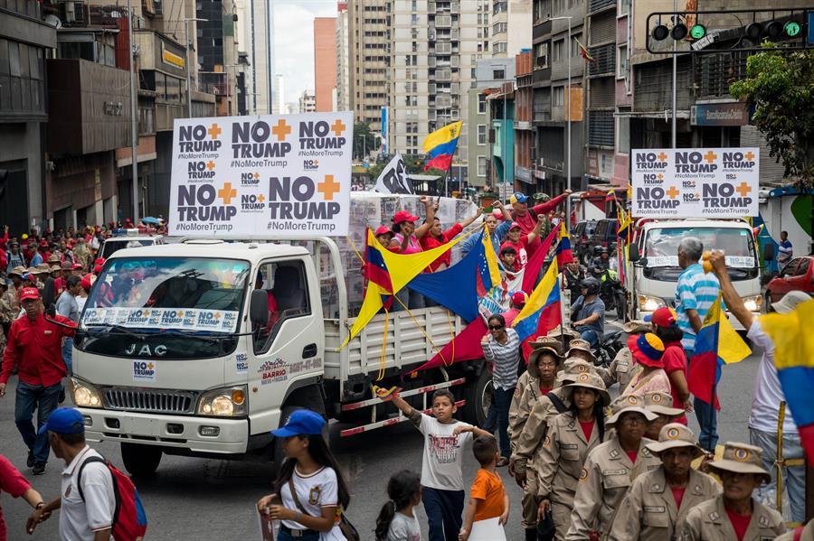 Rodríguez recibió en una tarima las más de trece millones de firmas que el Gobierno recogió desde agosto pasado tras el bloqueo ordenado por el presidente estadounidense, Donald Trump, y que fueron trasladadas hasta la Vicepresidencia por los movimientos chavistas en una marcha a la que acudieron miles de simpatizantes.