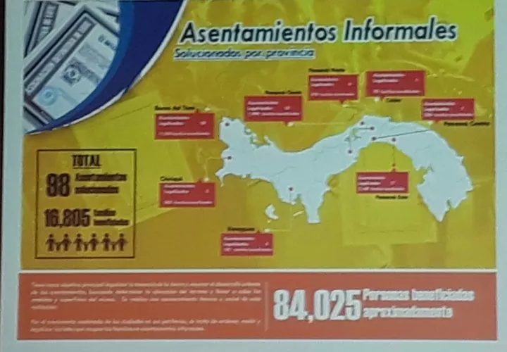 Un total de 16.805 familias panameñas que vivían en 98 asentamientos (barriadas) ilegales distribuidos por todo el país han conseguido la titularidad de sus tierras y legalizado sus viviendas, informó hoy el Gobierno.