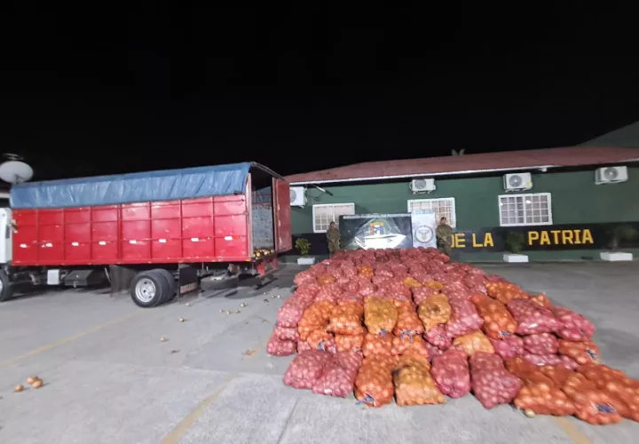 Unidades de Servicio Nacional de Fronteras (Senafront) interceptaron en Paso Canoas cerca de 400 sacos de cebolla que ingresaban al país sin registros legales.