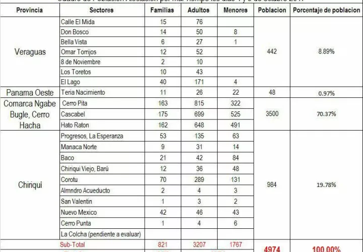 El director del Sistema Nacional de Protección Civil (Sinaproc), José Donderis, afirmó que unas 4975 personas resultaron afectadas en varias provincias por la tormenta tropical Nate durante los días 4 y 5 de octubre.