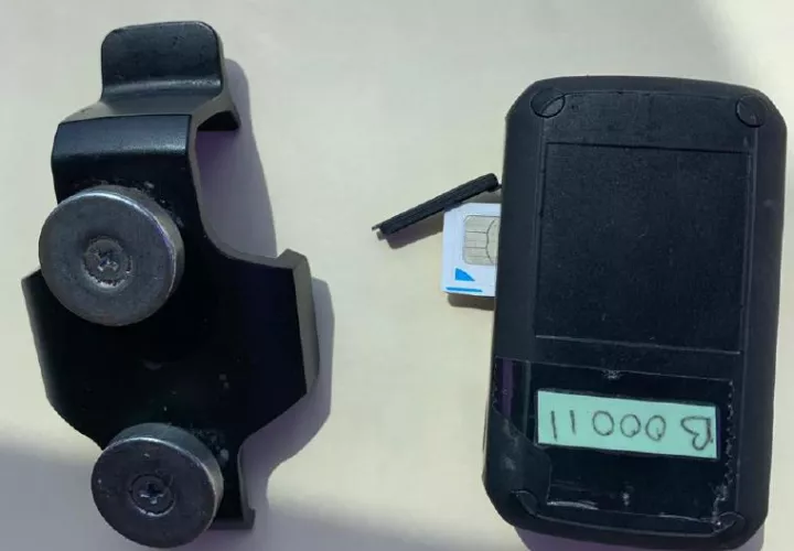 El aparato que utiliza un chip de una telefónica nacional se encontraba colocado en los brazos de la dirección de carro, ajustado con cinta adhesiva y unos imanes que tiene en la parte posterior que se ajustan a la parte metálica del vehículo.
