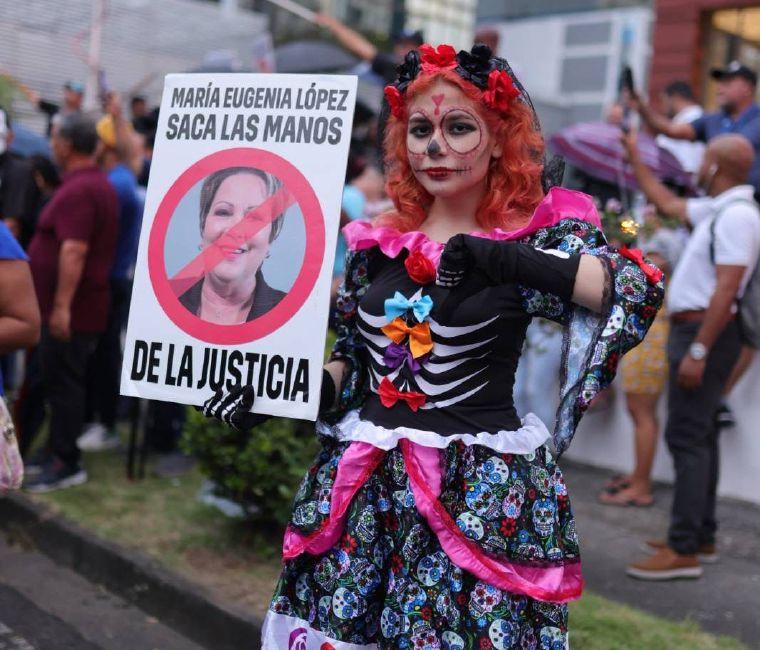 Con una murga al que los asistentes coreaban: ¡abran paso que vienen los RM, Sí, Sí, con Martinelli!, miembros del partido Realizando Metas (RM) efectuaron una singular protestas con participantes disfrazados de monstruo y brujas para aprovechar la celebración del Halloween y denunciar las monstruosidades cometidas por el binomio Cortizo-Carrizo contra el exmandatario Ricardo Martinelli.