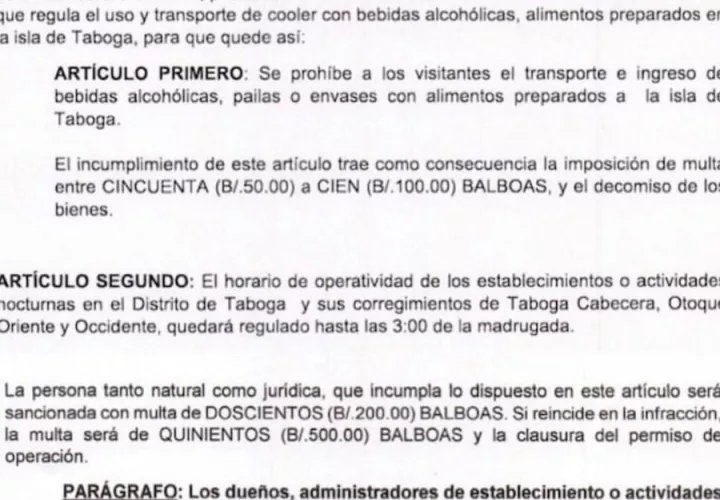 Panamá- La gobernadora de Panamá, Carla García, dijo que el decreto emitido por la alcaldía de Taboga se refiere a las personas que suben al ferry con alimentos para ser vendidos en la isla.