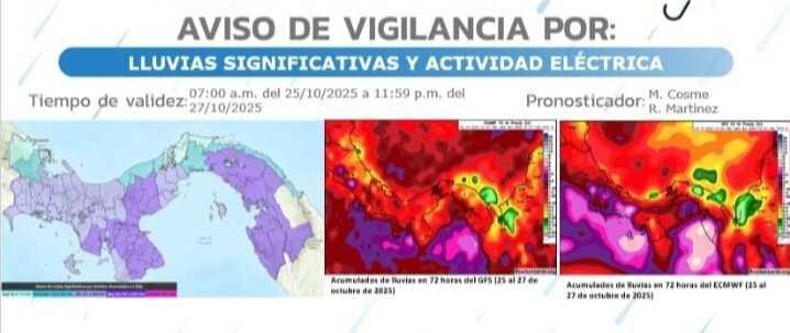 El Instituto Nacional de Hidrología y Meteorología de Panamá ha emitido este sábado una alerta por lluvias y tormentas eléctricas que afectarán diversas regiones del país hasta el próximo lunes.