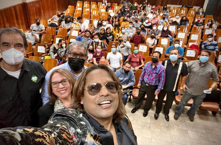 El actor y productor de cine Prabhakar Sharan y la Directora Ejecutiva de Producción de cine Teresa Rodríguez, participaron en un conversatorio con estudiantes graduandos y pre graduandos de la Licenciatura de Radio, Cine y Televisión de la Facultad de Comunicación Social de la Universidad de Panamá.