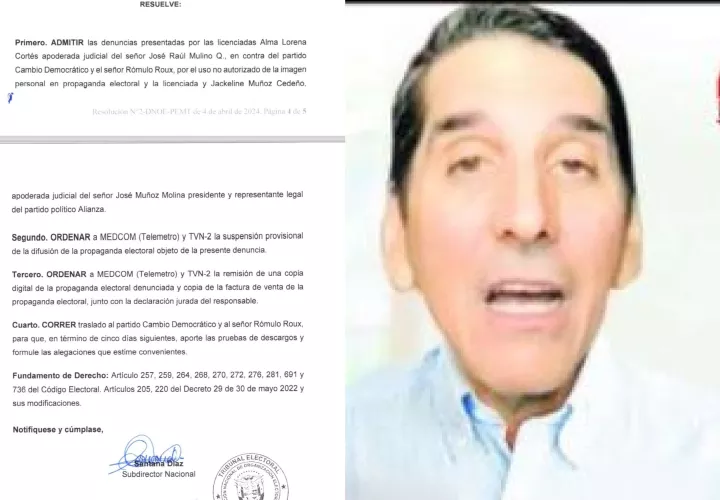 Las denuncias, presentadas por las licenciadas Alma Lorena Cortés y Jackeline Muñoz Cedeño, apoderadas judiciales del señor Mulino y del partido Alianza respectivamente, señalan al partido Cambio Democrático, y en particular al señor Rómulo Roux, como responsables de la propaganda que utiliza la imagen personal del candidato Mulino de manera no autorizada.