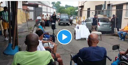 El sábado una ambulancia demoró 10 minutos para tratar de ingresar al albergue para salvar a un adulto mayor. El hombre de 74 años murió y hoy se realizaron las honras fúnebres cerca a la valla.