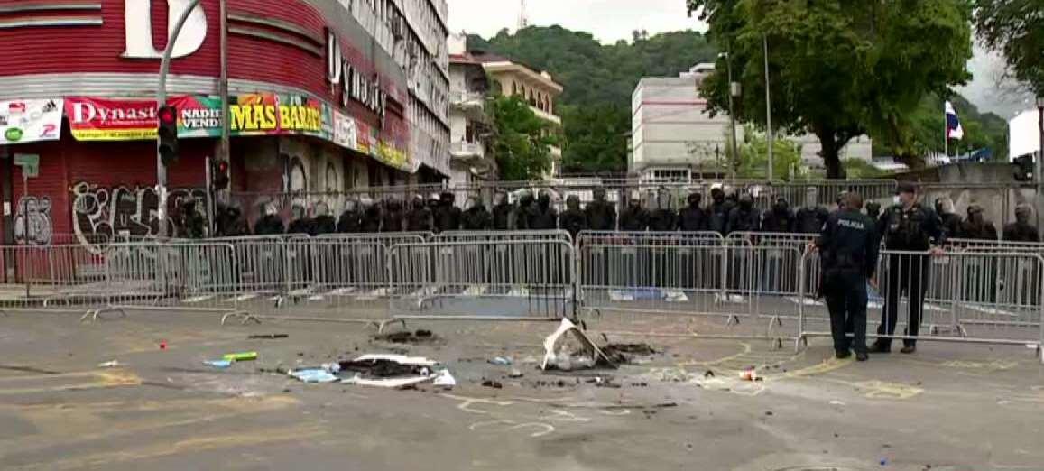 Los universitarios, trabajadores y sindicalistas violentaron la cerca perimetral que impedía el ingreso hacia el hemiciclo legislativo, quemaron muñecos que representaban las figuras del presidente de la República, Laurentino Cortizo; y el vicepresidente José Gabriel Carrizo.