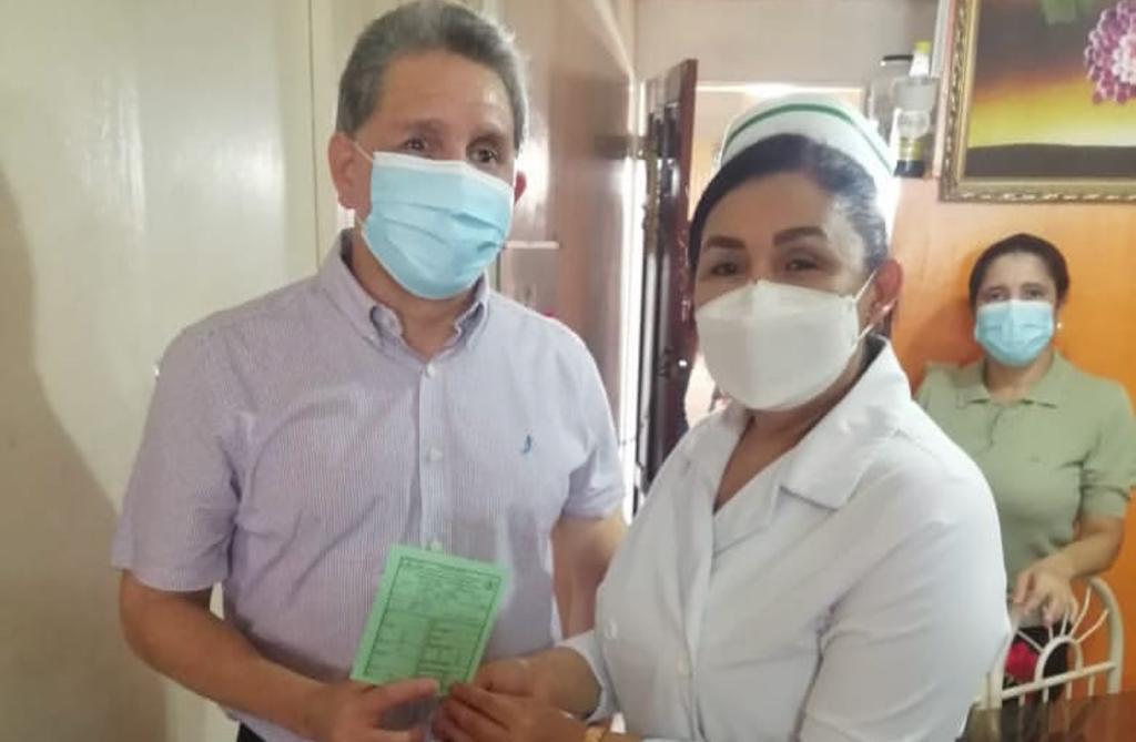 La jefa nacional de Enfermería del Ministerio de Salud, Eusebia de Copete, acudió personalmente al apartamento Caballero, para garantizar su inmunización con la primera dosis de la vacuna , tras el incidente ocurrido en centro de vacunación auto express, ubicado en el Parque Omar.