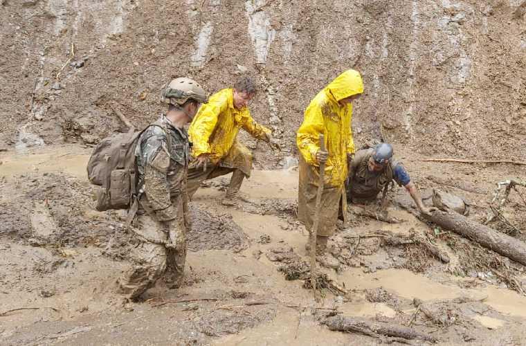 Los equipos de la Fuerza de Tarea en Conjunta ingresan a algunos puntos de Tierras Altas, para conocer la situación de las personas que habían quedado del otro lado de la vía producto del colapso de la misma el pasado martes.