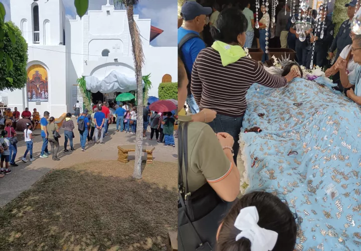 Creyentes hacen largas filas bajo un sol ardiente de este Viernes Santo para ingresar al templo y encontrarse con el Cristo de Alanje, una tradición que sigue los católicos.