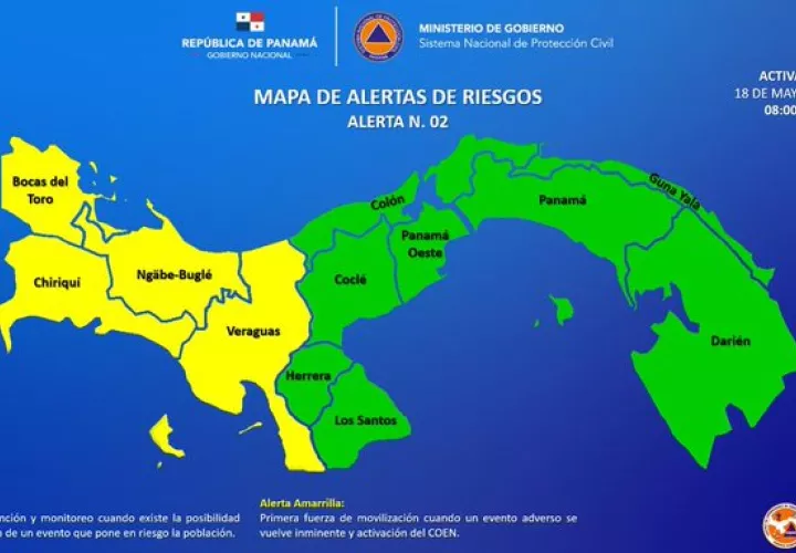 Panamá- El Sistema Nacional de Protección Civil (Sinaproc) declaró alerta amarilla por incremento de lluvias en Bocas del Toro, Chiriquí, Veraguas y comarca Ngäbe Buglé.