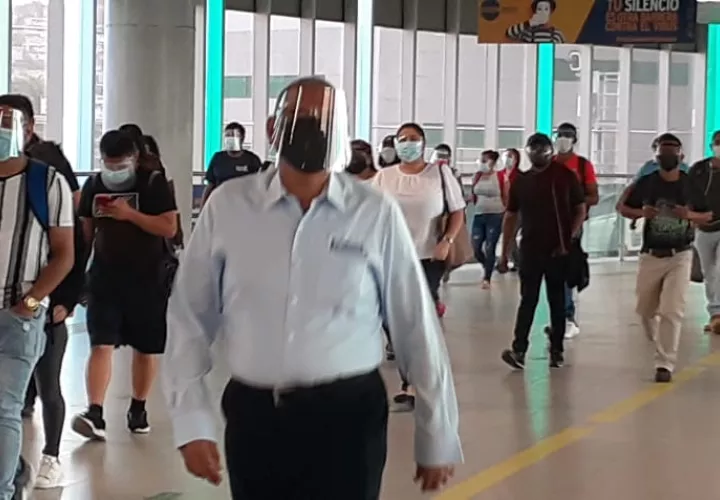 A partir de hoy, lunes, el Ministerio de Salud estableció el uso obligatorio de mascarillas más pantallas faciales para los usuarios del transporte público tras el aumento del aforo hasta el 80%.