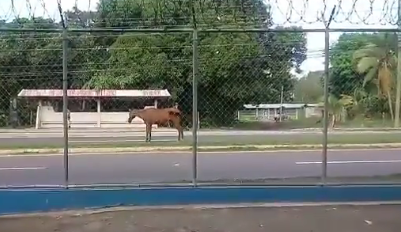 Hoy, viernes, hay un caballo en soltura paseando por la vía Interamericana, a la altura de Río Hato, provincia de Coclé.