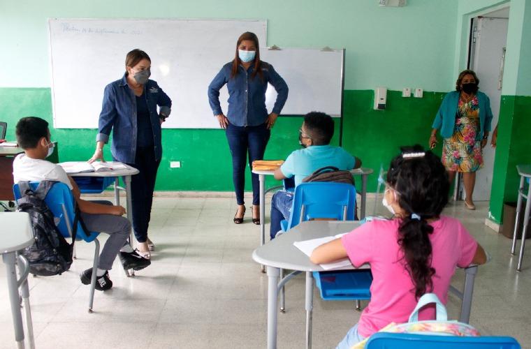 Gorday de Villalobos dijo que, al día de hoy, 2,300 centros educativos oficiales y particulares están abiertos. Cuando se empezó en forma semipresencial, el 31 de mayo, había restricciones en cuanto a la capacidad de los aforos, se hablaba de dos metros. En este momento, se refirió a una acelerada y masiva (positiva) apertura de escuelas.