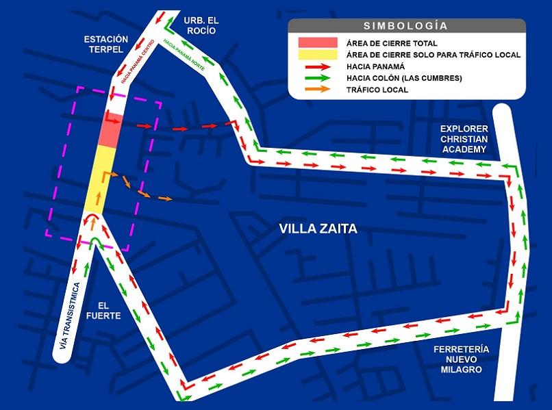 Mientras que los conductores que transiten hacia Panamá Centro, deberán tomar por la calle Antonio Amado, para luego volver a la vía Transístmica por la entrada principal de Villa Zaita.