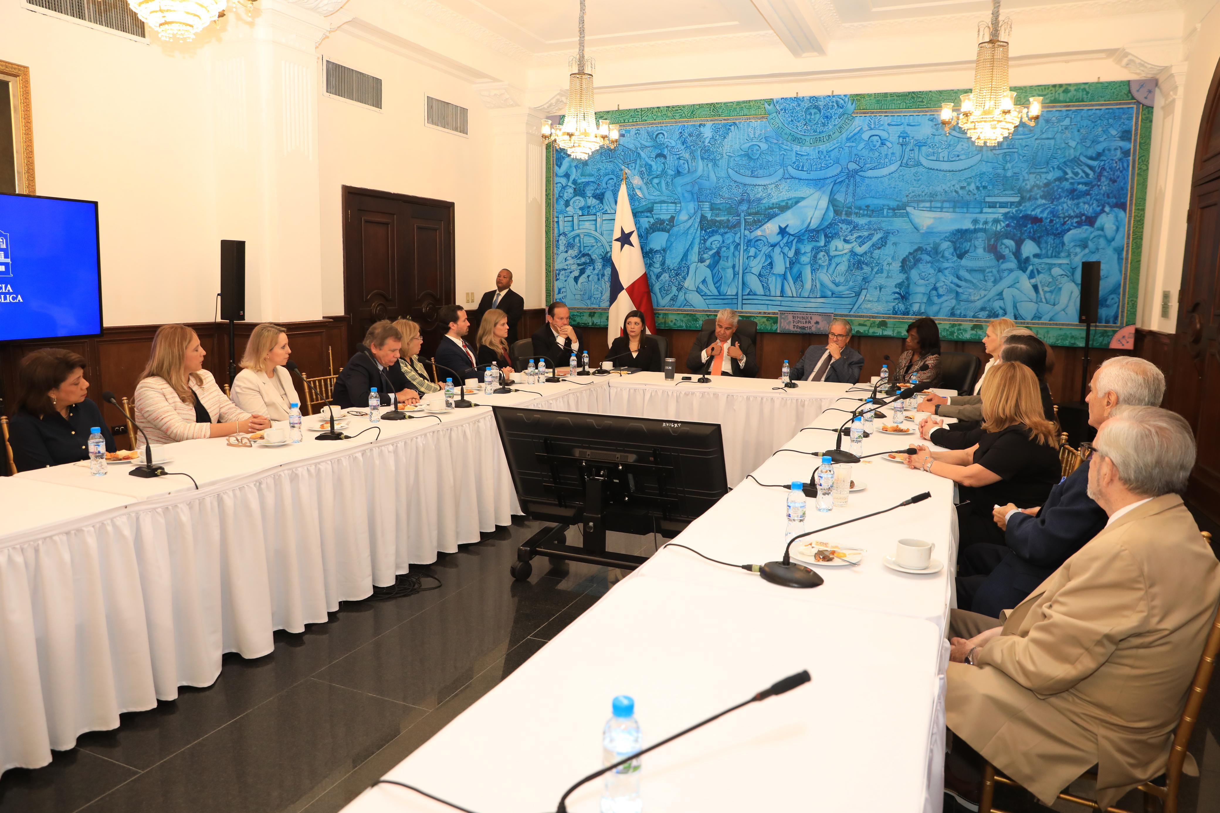 En la reunión acompañaron al mandatario los ministros Jackeline Muñoz (Trabajo), Fernando Boyd Galindo (Salud), Lucy Molinar (Educación) y el canciller Javier Martínez-Acha.