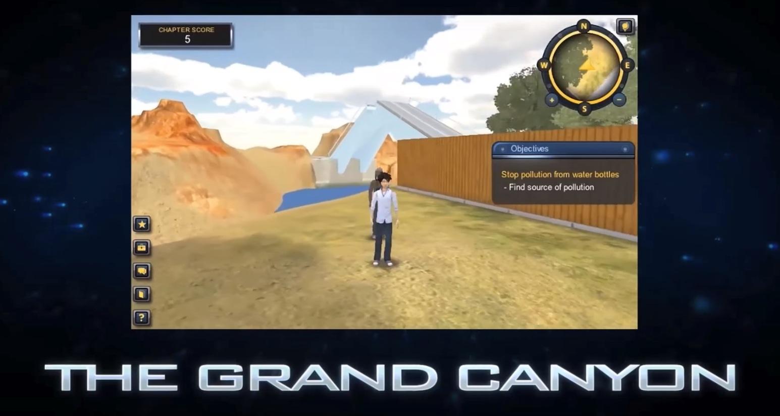 En el video game, el personaje central es un viajero del futuro quien debe utilizar el idioma inglés para encontrar el camino a casa en el año 2045.